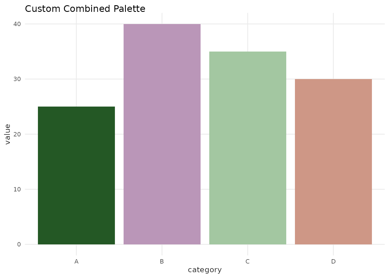 Eight themed palettes, each with 4 carefully selected colors. Ideal for small categorical datasets.