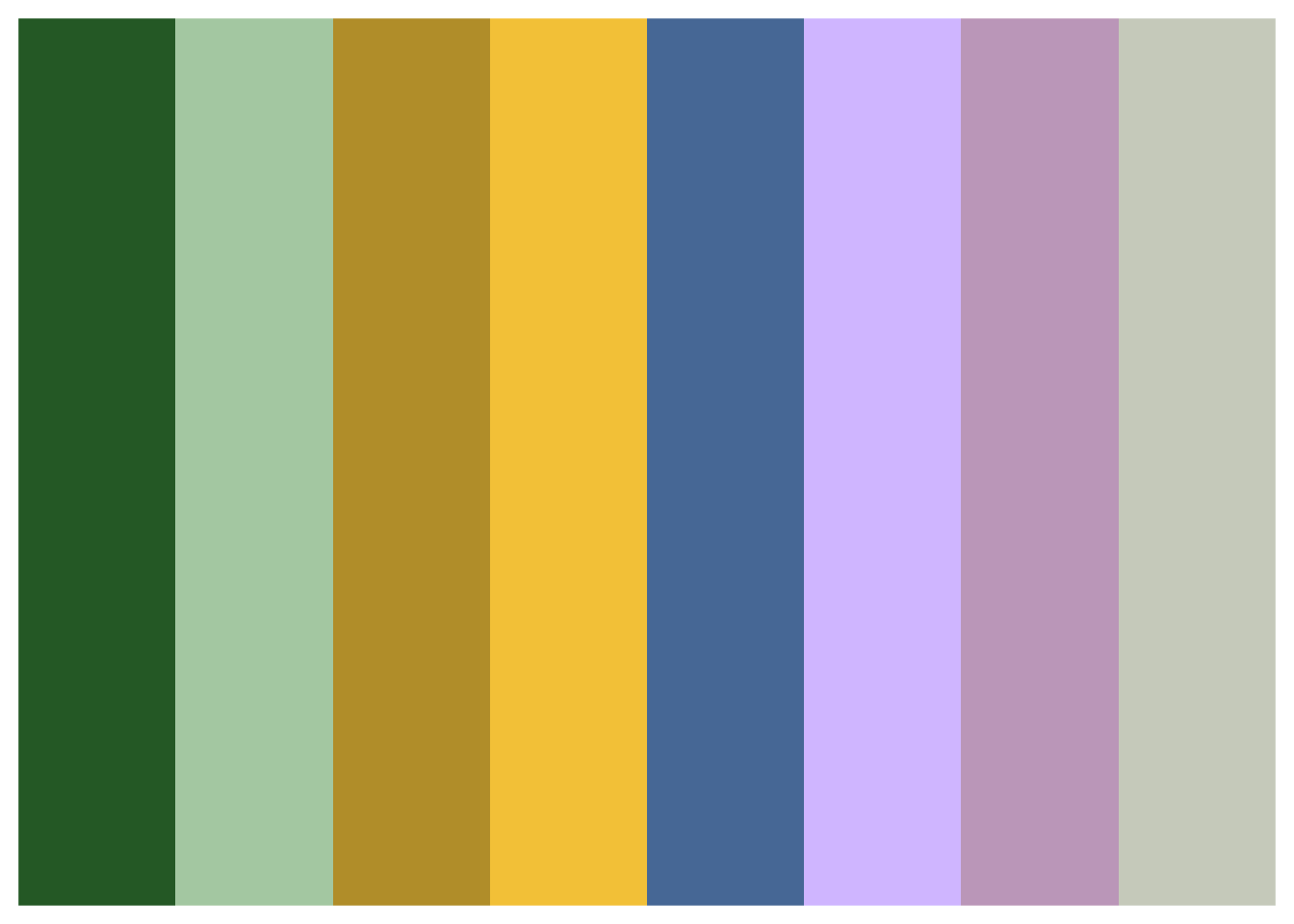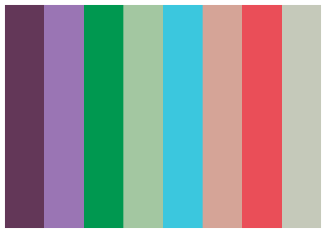 - Qualitative Palettes (8 colors): Larger categorical datasets