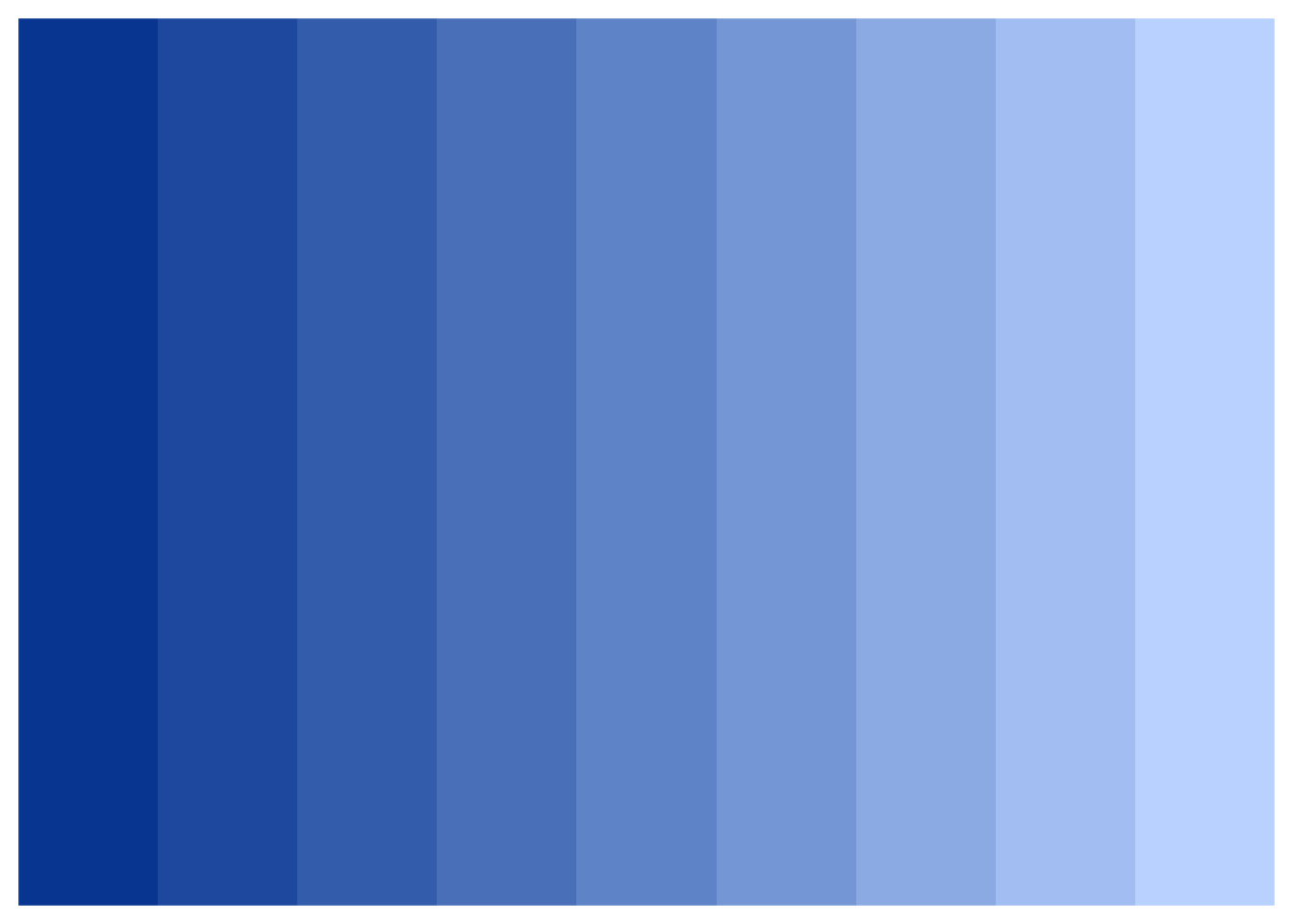 Eight gradient palettes with 9 colors each, transitioning from light to dark. Perfect for continuous or ordered data.