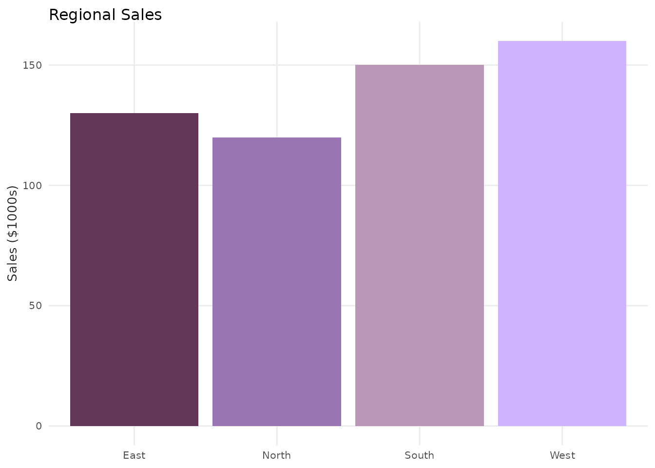 labs(title = "Regional Sales", x = NULL, y = "Sales ($1000s)") +
