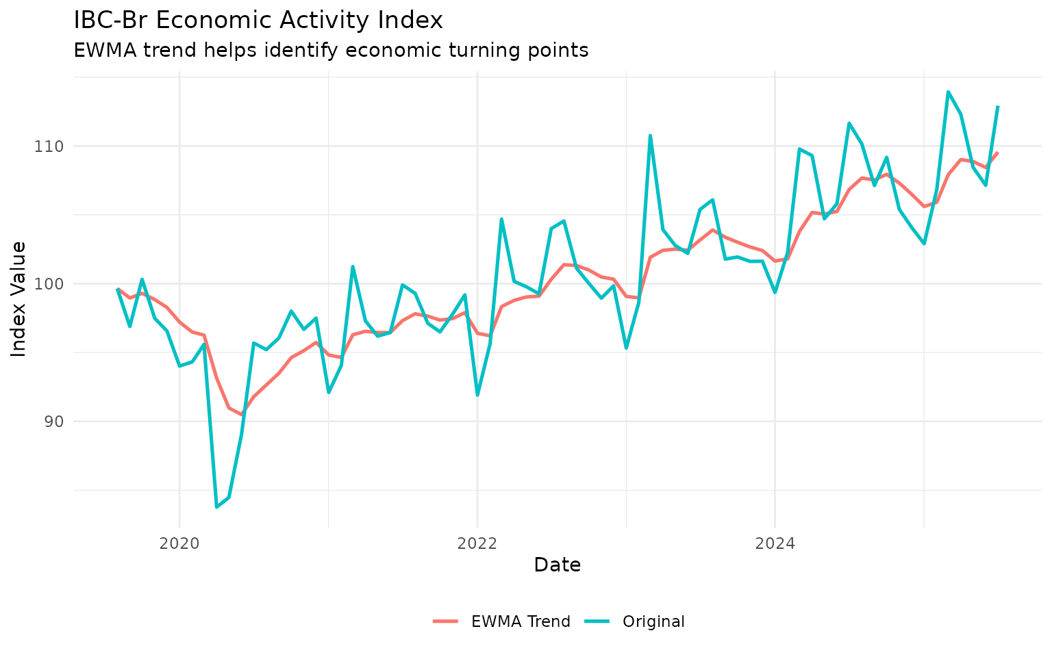 data |> augment_trends(value_col = "value", methods = "ewma", smoothing = 0.6)For quarterly data: