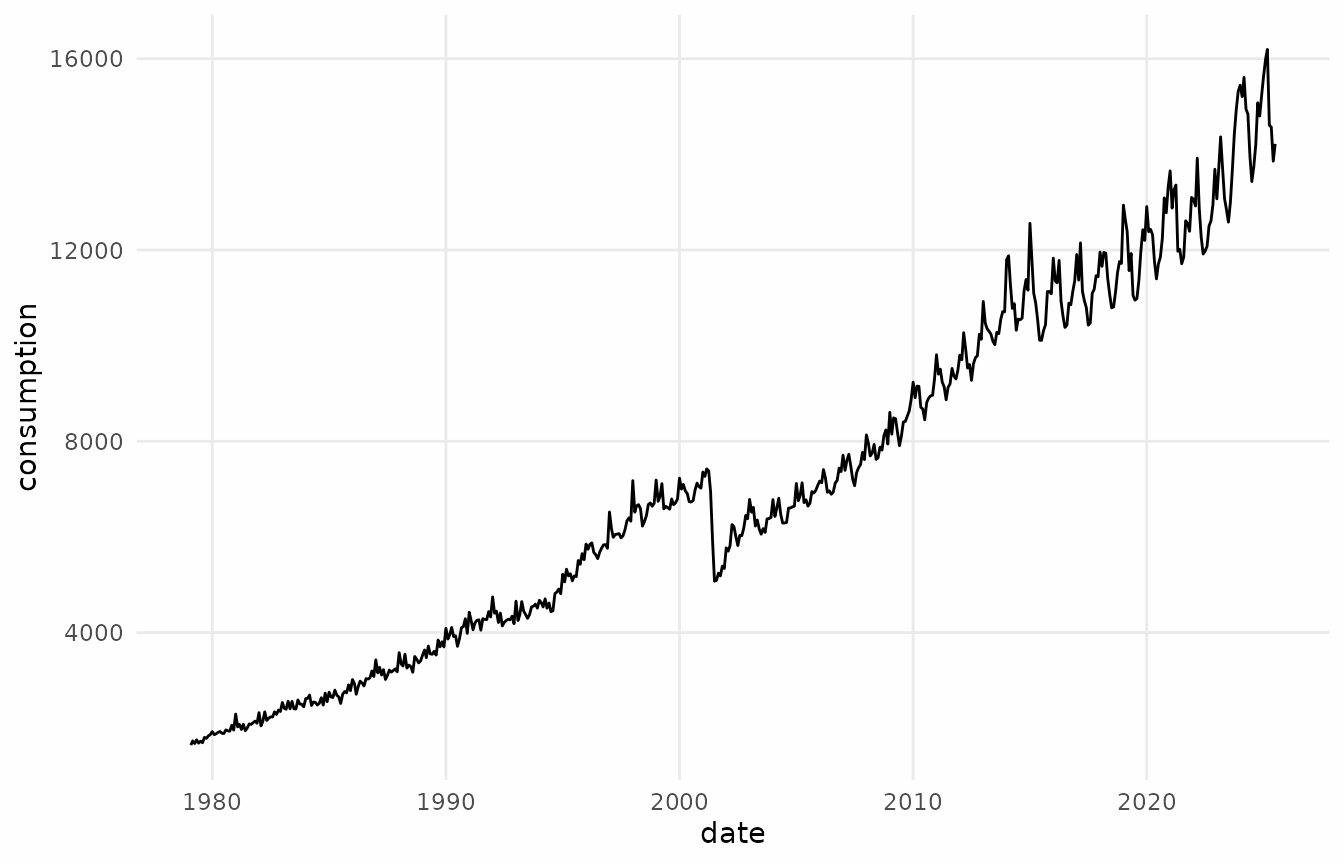 )This dataset contains monthly electric consumption for Brazilian households from 1979 to 2025.